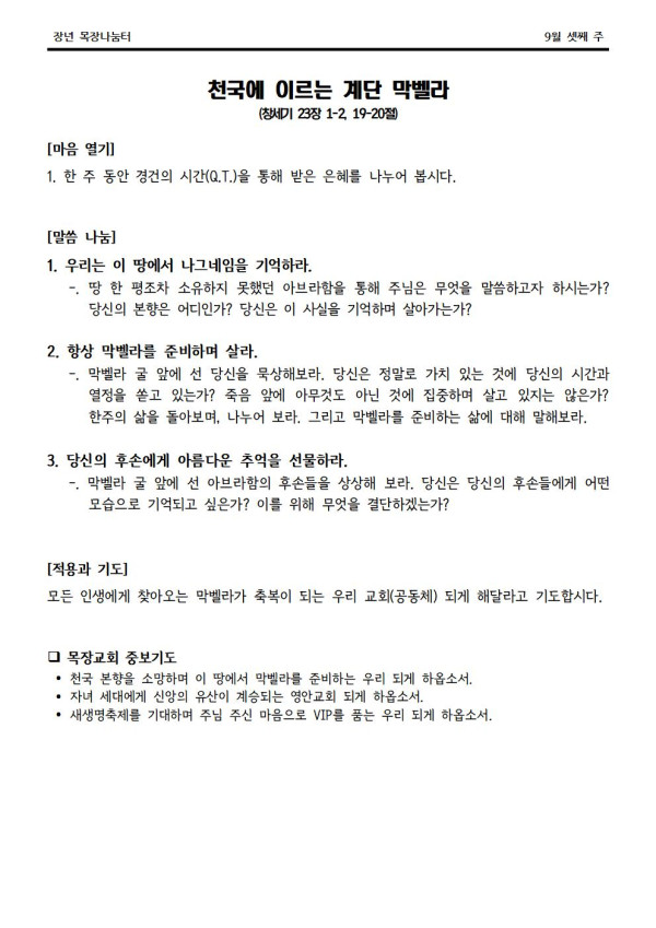 2022년 9월 18일 나눔터(목원용) 센텀예배당