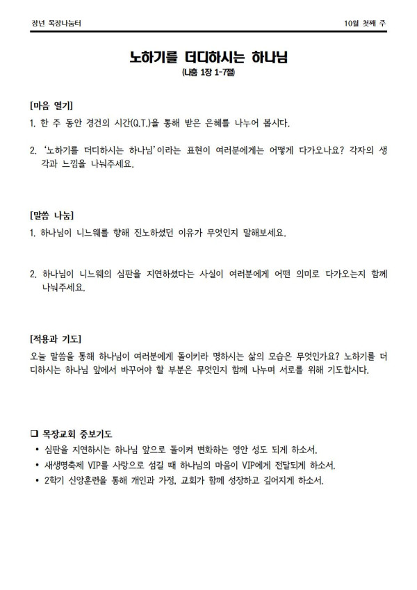 2022년 10월 2일 나눔터(목원용) 센텀예배당