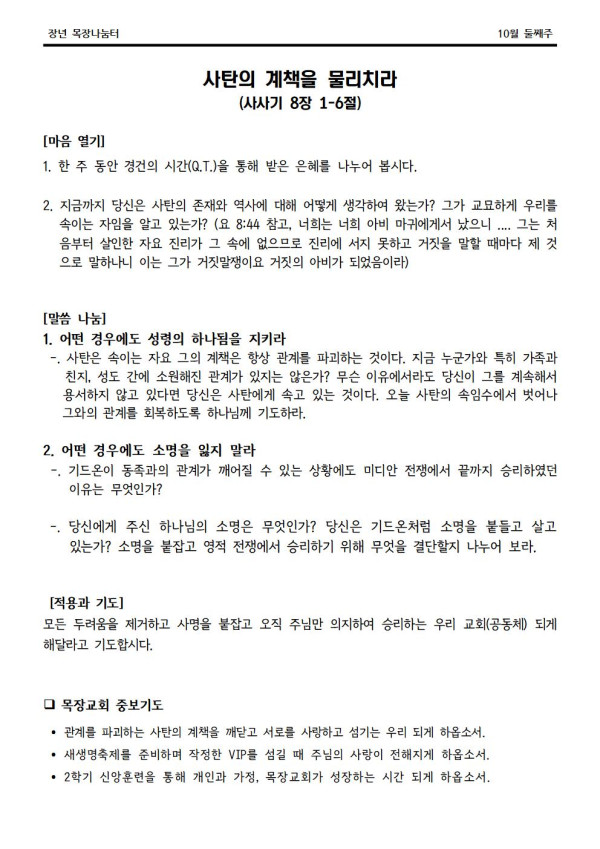 * 2022년 10월 9일 나눔터(목원용) 가야예배당