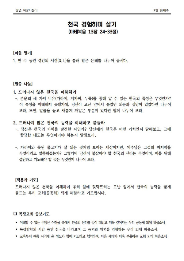 * 2022년 7월 3일 나눔터(목원용) 가야예배당