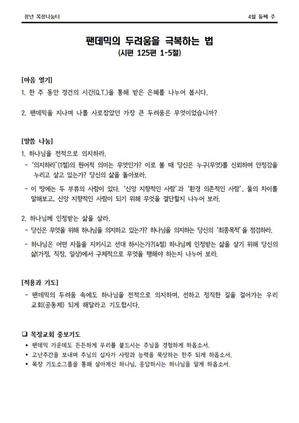 2022년 4월 10일 나눔터(목원용) 가야예배당