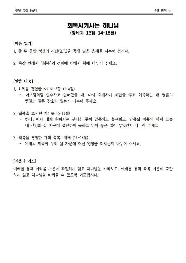 2022년 4월 24일 나눔터(목원용) 센텀예배당