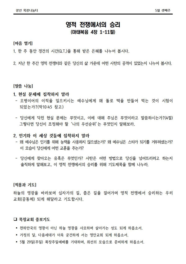 2022년 5월 15일 나눔터(목원용) 가야예배당