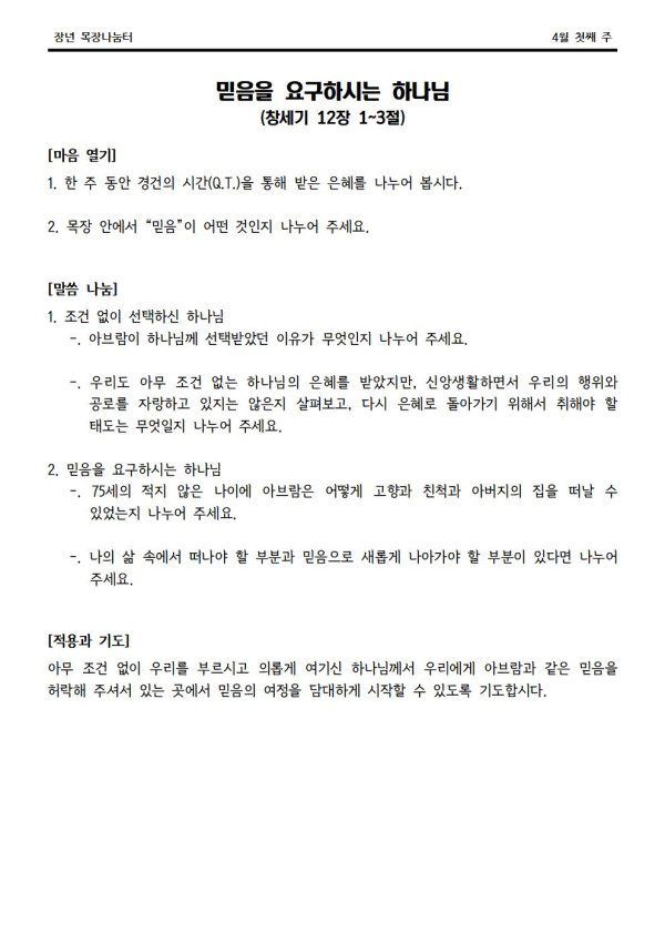 2022년 4월 3일 나눔터(목원용) 센텀예배당