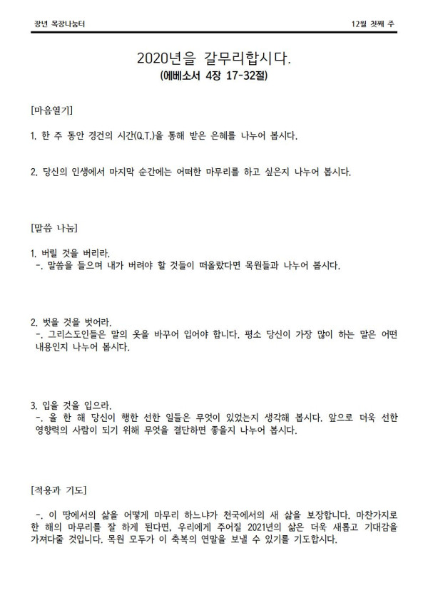 2020년 12월 6일 나눔터(목원용) 가야예배당