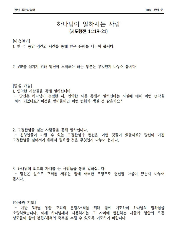 2020년 10월 4일 나눔터(목원용) 가야예배당