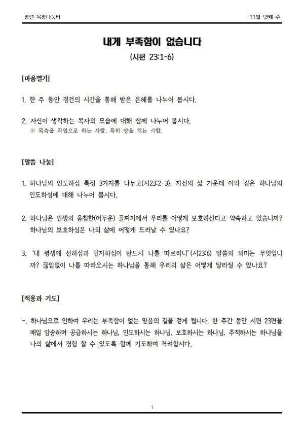 2020년 11월 22일 나눔터(목원용) 센텀예배당