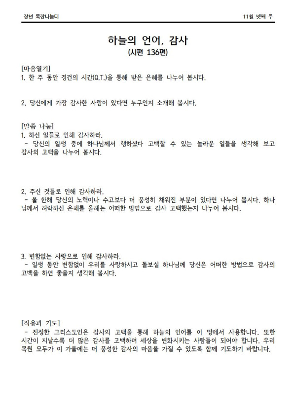 2020년 11월 22일 나눔터(목원용) 가야예배당