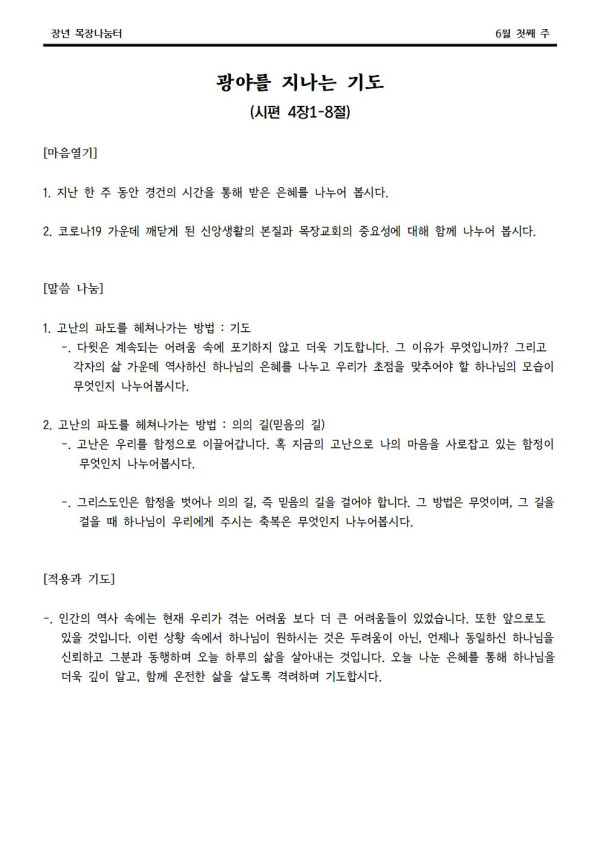 2020년 6월 7일 나눔터(목원용) 센텀예배당