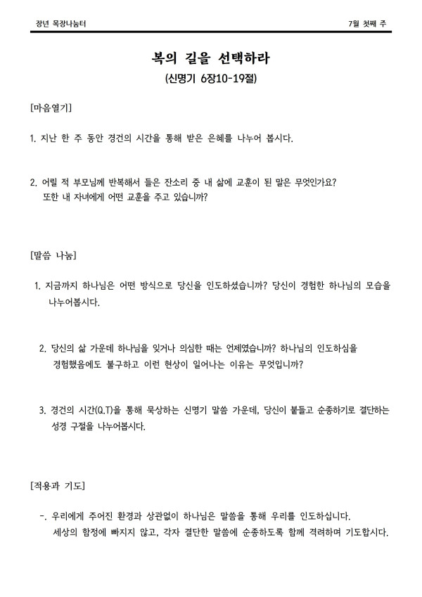 2020년 7월 5일 나눔터(목원용) 센텀예배당