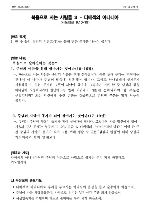 * 2024년 9월 29일 나눔터(목원용) 가야예배당