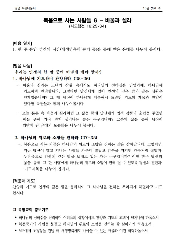 2024년 10월 20일 나눔터(목원용) 가야예배당