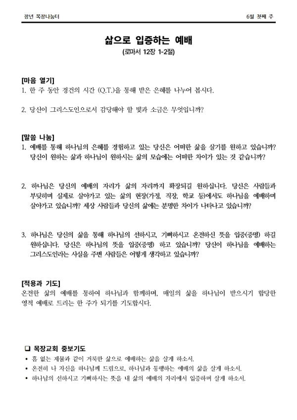 2024년 6월 2일 나눔터(목원용) 센텀예배당
