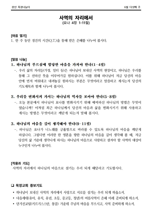 2024년 6월 30일 나눔터(목원용) 가야예배당