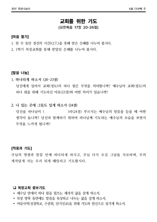 2024년 6월 30일 나눔터(목원용) 센텀예배당