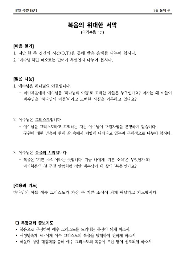 2024년 9월 8일 나눔터(목원용) 센텀예배당