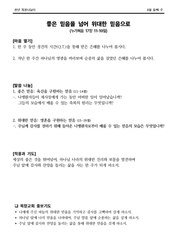 2024년 4월 14일 나눔터(목원용) 센텀예배당