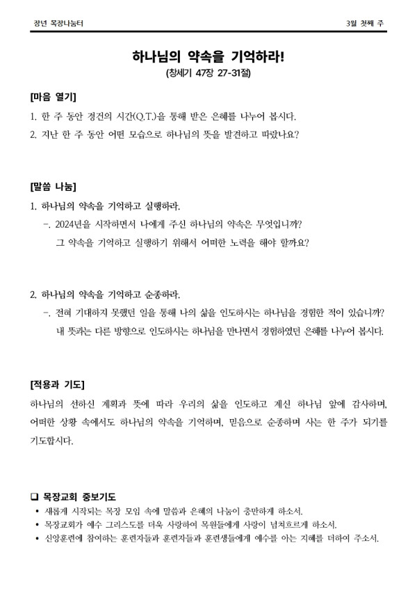 2024년 3월 3일 나눔터(목원용) 센텀예배당
