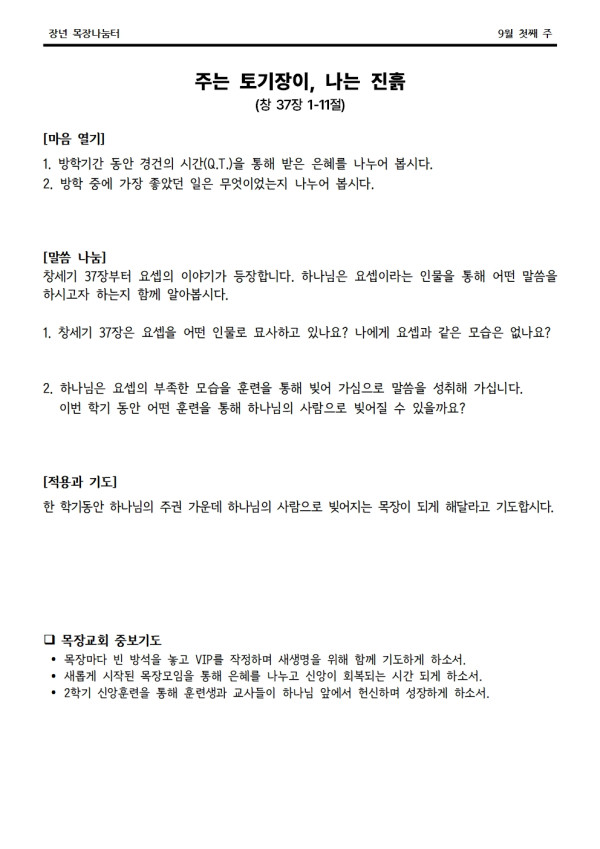 2023년 9월 3일 나눔터(목원용) 센텀예배당