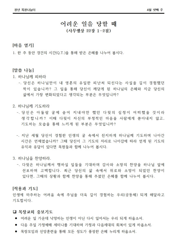 2023년 4월 23일 나눔터(목원용) 가야예배당