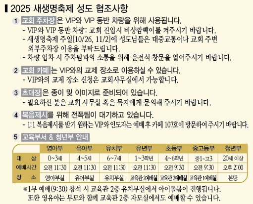 새생명축제 주일 당일 성도 협조사항 안내