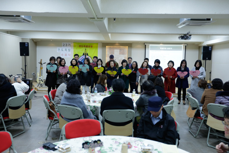 신앙훈련 | 23기 가야전도폭발 수료식 페이지 정보 작성자 서인복 작성일16-01-16 22:47 조회19,802회 댓글0건 이전글 다음글 목록 본문 2015년 12월 20일에 가야예배당에서 진행되었던 23기 전도폭발훈련 수료식..1단계 24명, 2단계 6명, 3단계 4명, 4단계 7명, 총 41명이 수료하였습니다.이 모든 영광을 하나님께 돌립니다! 댓글목록 등록된 댓글이 없습니다. 이전글 다음글 목록