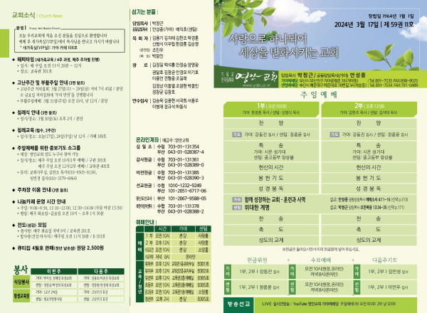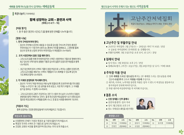 2024년 3월 17일 주보 (가야예배당) 페이지 정보 작성자 관리지기 작성일24-03-16 11:17 조회3,494회 댓글0건 관련링크 목록 본문 2024년 3월 17일 주보 (가야예배당) 댓글목록 등록된 댓글이 없습니다. 목록