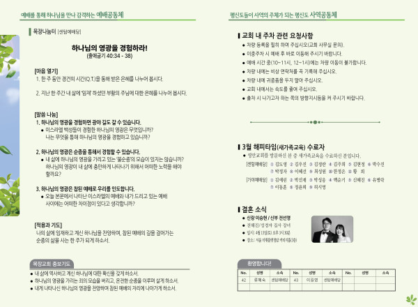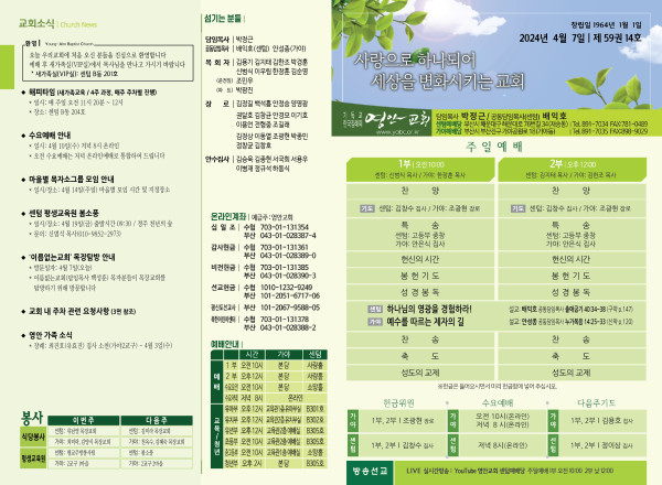 2024년 4월 7일 주보 (센텀예배당) 페이지 정보 작성자 관리지기 작성일24-04-06 10:49 조회3,152회 댓글0건 관련링크 목록 본문 2024년 4월 7일 주보 (센텀예배당) 댓글목록 등록된 댓글이 없습니다. 목록