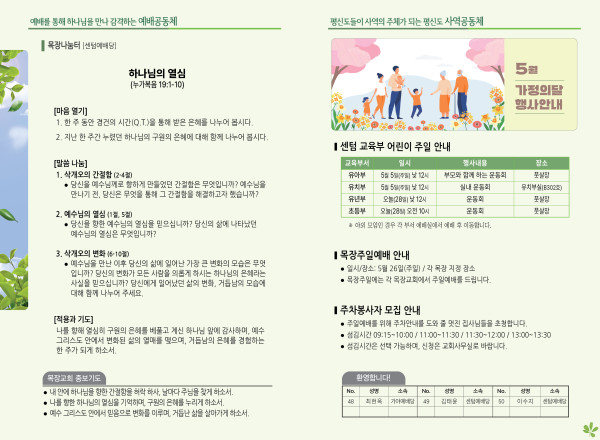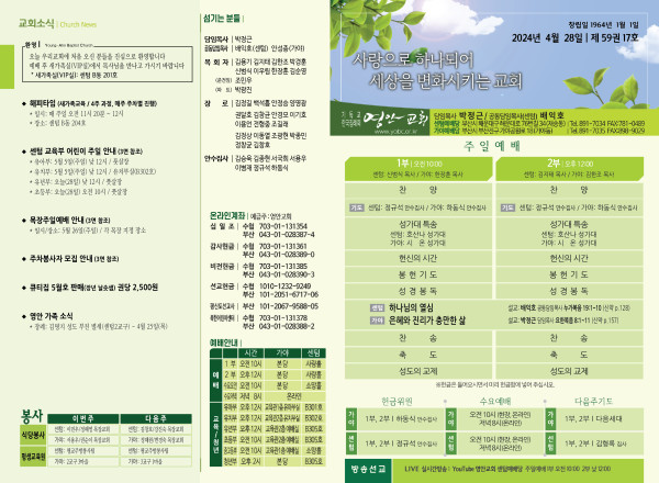 2024년 4월 28일 주보 (센텀예배당) 페이지 정보 작성자 관리지기 작성일24-04-28 09:14 조회3,112회 댓글0건 관련링크 목록 본문 2024년 4월 28일 주보 (센텀예배당) 댓글목록 등록된 댓글이 없습니다. 목록