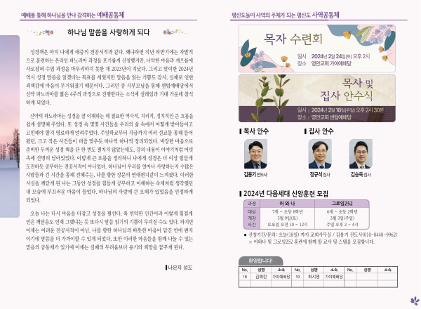 2024년 2월 18일 주보 (센텀예배당) 페이지 정보 작성자 관리지기 작성일24-02-17 12:10 조회3,316회 댓글0건 관련링크 목록 본문 2024년 2월 18일 주보 (센텀예배당) 댓글목록 등록된 댓글이 없습니다. 목록