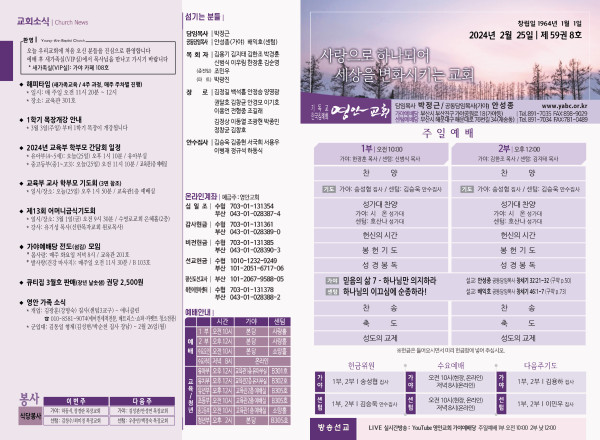 2024년 2월 25일 주보 (가야예배당) 페이지 정보 작성자 관리지기 작성일24-02-24 11:07 조회3,430회 댓글0건 관련링크 목록 본문 2024년 2월 25일 주보 (가야예배당) 댓글목록 등록된 댓글이 없습니다. 목록