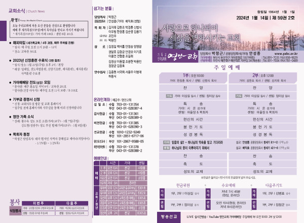 2024년 1월 14일 주보 (가야예배당) 페이지 정보 작성자 관리지기 작성일24-01-13 11:12 조회3,505회 댓글0건 관련링크 목록 본문 2024년 1월 14일 주보 (가야예배당) 댓글목록 등록된 댓글이 없습니다. 목록