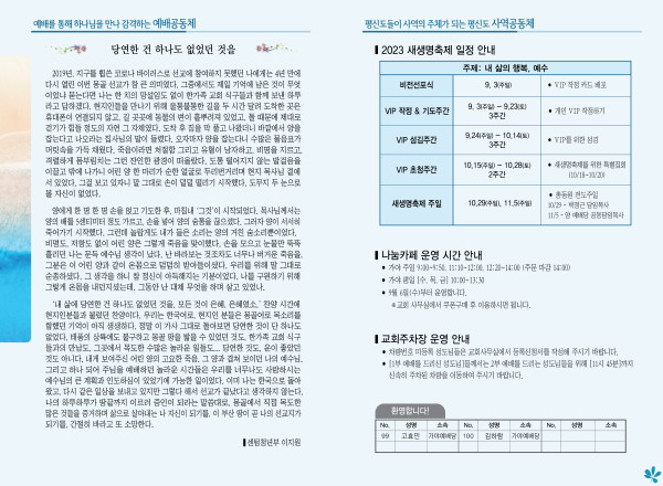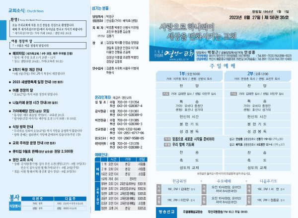 2023년 8월 27일 주보 (가야예배당) 페이지 정보 작성자 관리지기 작성일23-08-26 11:18 조회3,789회 댓글0건 관련링크 목록 본문 2023년 8월 27일 주보 (가야예배당) 댓글목록 등록된 댓글이 없습니다. 목록
