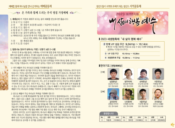 2023년 9월 24일 주보 (센텀예배당) 페이지 정보 작성자 관리지기 작성일23-09-23 10:17 조회3,687회 댓글0건 관련링크 목록 본문 2023년 9월 24일 주보 (센텀예배당) 댓글목록 등록된 댓글이 없습니다. 목록