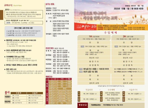 2023년 10월 1일 주보 (가아예배당) 페이지 정보 작성자 관리지기 작성일23-09-26 17:21 조회3,761회 댓글0건 관련링크 목록 본문 * 2023년 10월 1일 주보 (가아예배당) 댓글목록 등록된 댓글이 없습니다. 목록