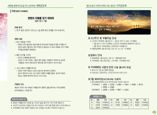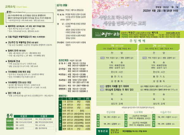 2023년 4월 2일 주보 (가야예배당) 페이지 정보 작성자 관리지기 작성일23-04-01 11:24 조회4,459회 댓글0건 관련링크 목록 본문 * 2023년 4월 2일 주보 (가야예배당) 댓글목록 등록된 댓글이 없습니다. 목록