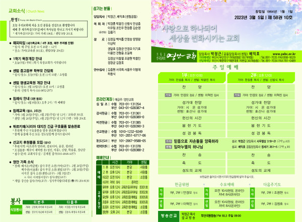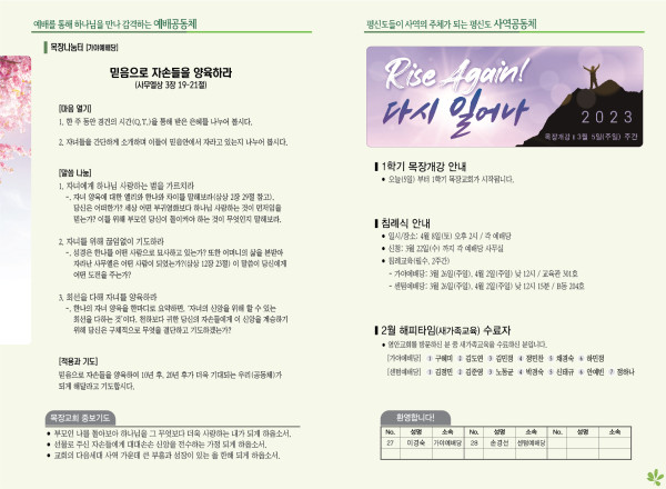 2023년 3월 5일 주보 (가야예배당) 페이지 정보 작성자 관리지기 작성일23-03-04 11:20 조회4,282회 댓글0건 관련링크 목록 본문 * 2023년 3월 5일 주보 (가야예배당) 댓글목록 등록된 댓글이 없습니다. 목록
