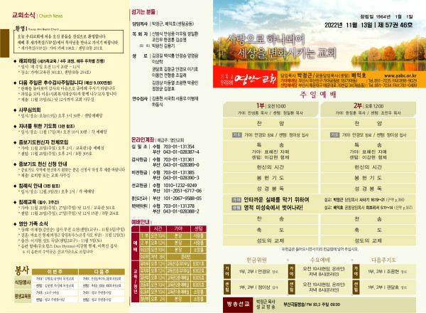 2022년 11월 13일 주보 페이지 정보 작성자 관리지기 작성일22-11-12 13:03 조회4,852회 댓글0건 관련링크 목록 본문 * 2022년 11월 13일 주보 댓글목록 등록된 댓글이 없습니다. 목록