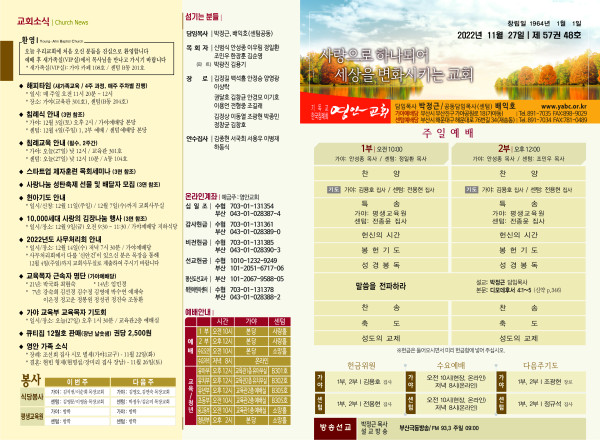 2022년 11월 27일 주보 (가야예배당) 페이지 정보 작성자 관리지기 작성일22-11-26 11:00 조회4,805회 댓글0건 관련링크 목록 본문 2022년 11월 27일 주보 (가야예배당) 댓글목록 등록된 댓글이 없습니다. 목록