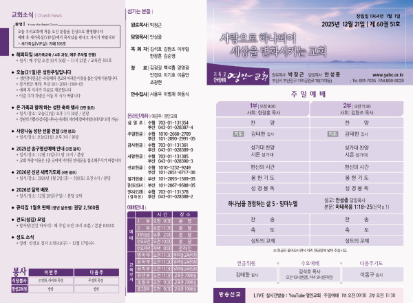 2025년 12월 21일 주보 페이지 정보 작성자 관리지기 작성일25-12-20 10:14 조회1,606회 댓글0건 관련링크 목록 본문 2025년 12월 21일 주보 댓글목록 등록된 댓글이 없습니다. 목록