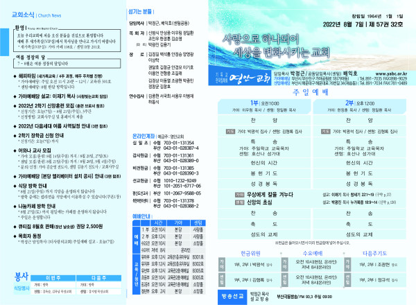 2022년 8월 7일 주보 페이지 정보 작성자 관리지기 작성일22-08-06 11:23 조회4,955회 댓글0건 관련링크 목록 본문 *2022년 8월 7일 주보 댓글목록 등록된 댓글이 없습니다. 목록