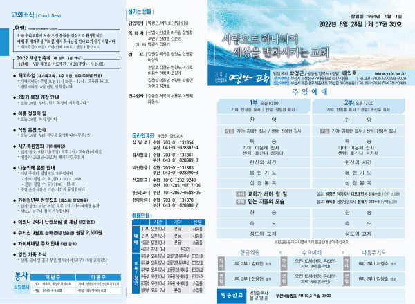 2022년 8월 28일 주보 (가야예배당) 페이지 정보 작성자 관리지기 작성일22-08-27 12:29 조회4,886회 댓글0건 관련링크 목록 본문 * 2022년 8월 28일 주보 (가야예배당) 댓글목록 등록된 댓글이 없습니다. 목록