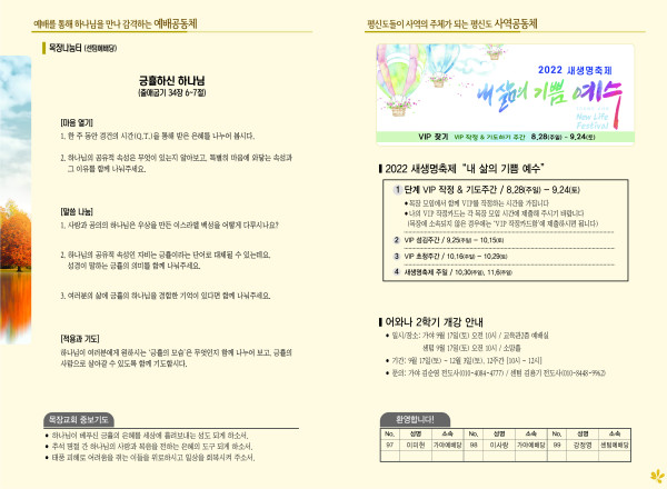2022년 9월 11일 주보 (센텀예배당) 페이지 정보 작성자 관리지기 작성일22-09-07 16:16 조회4,827회 댓글0건 관련링크 목록 본문 2022년 9월 11일 주보 (센텀예배당) 댓글목록 등록된 댓글이 없습니다. 목록