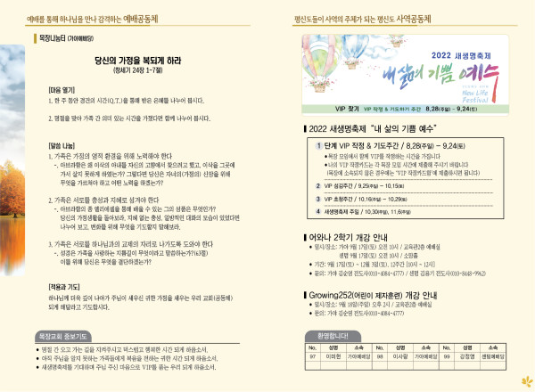 2022년 9월 11일 주보 (가야예배당) 페이지 정보 작성자 관리지기 작성일22-09-11 08:48 조회4,673회 댓글0건 관련링크 목록 본문 2022년 9월 11일 주보 (가야예배당) 댓글목록 등록된 댓글이 없습니다. 목록