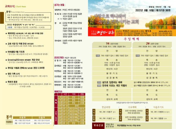 2022년 9월 18일 주보 (가야예배당) 페이지 정보 작성자 관리지기 작성일22-09-17 11:20 조회4,833회 댓글0건 관련링크 목록 본문 *2022년 9월 18일 주보 (가야예배당) 댓글목록 등록된 댓글이 없습니다. 목록