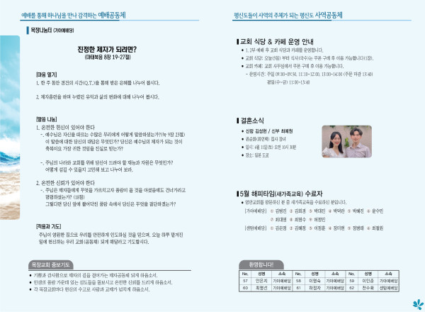 2022년 6월 5일 주보 (가야예배당) 페이지 정보 작성자 관리지기 작성일22-06-04 11:47 조회5,242회 댓글0건 관련링크 목록 본문 * 2022년 6월 5일 주보 (가야예배당) 댓글목록 등록된 댓글이 없습니다. 목록