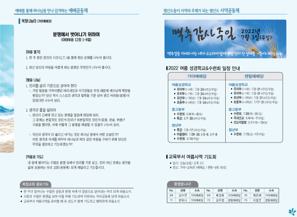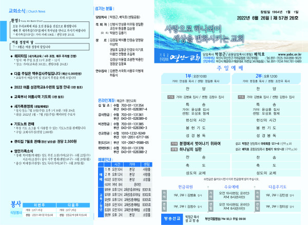 2022년 6월 26일 주보 (가야예배당) 페이지 정보 작성자 관리지기 작성일22-06-25 12:57 조회4,983회 댓글0건 관련링크 목록 본문 *2022년 6월 26일 주보 (가야예배당) 댓글목록 등록된 댓글이 없습니다. 목록