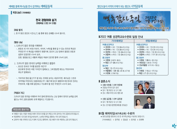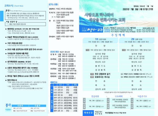 2022년 7월 3일 주보 (가야예배당) 페이지 정보 작성자 관리지기 작성일22-07-02 11:59 조회5,310회 댓글0건 관련링크 목록 본문 * 2022년 7월 3일 주보 (가야예배당) 댓글목록 등록된 댓글이 없습니다. 목록