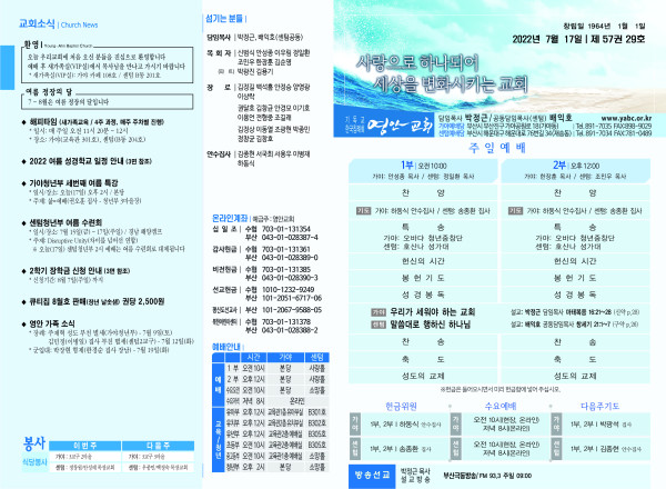 2022년 7월 17일 주보 페이지 정보 작성자 관리지기 작성일22-07-16 12:41 조회5,068회 댓글0건 관련링크 목록 본문 * 2022년 7월 17일 주보 댓글목록 등록된 댓글이 없습니다. 목록