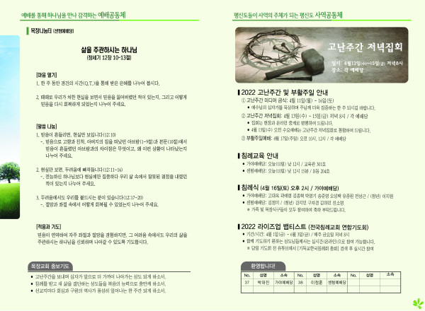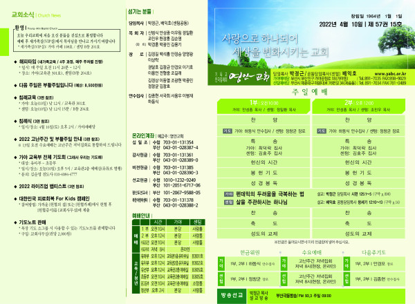 2022년 4월 10일 주보 (센텀예배당) 페이지 정보 작성자 관리지기 작성일22-04-09 11:34 조회5,371회 댓글0건 관련링크 목록 본문 * 2022년 4월 10일 주보 (센텀예배당) 댓글목록 등록된 댓글이 없습니다. 목록